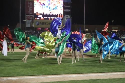 Y en el cierre de la inauguración, la fiesta de fuegos artificiales que iluminaron los alrededores del nuevo y flamante coloso ubicado en el desierto, el regio parque de pelota que surge a la vida recibiendo la fiesta de la hermandad beisbolera.