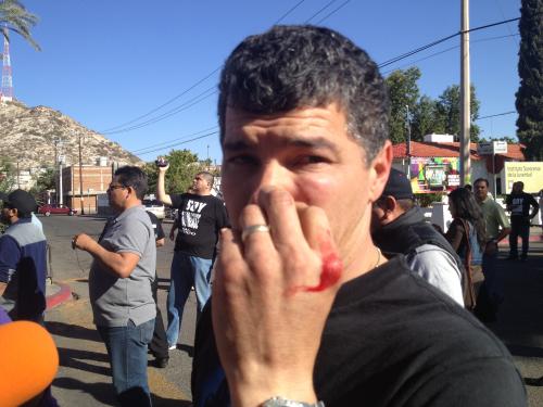 Fue en los alrededores del Poder Judicial del Estado donde los encapuchados atacaron a golpes a tres manifestantes y a tres reporteros, sin que hubiera presencia policiaca.