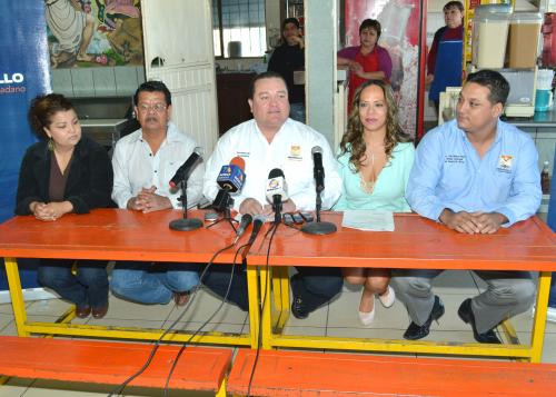 Así lo anunciaron el secretario del Ayuntamiento, Jesús Villalobos García; Lyzeth Salcedo Salinas, titular de la Comisión de Fomento Económico, y Héctor Odín Blanco Pérez, director de Desarrollo Rural, durante una rueda de prensa conjunta realizada en uno de los comercios beneficiados en San Pedro El Saucito.
