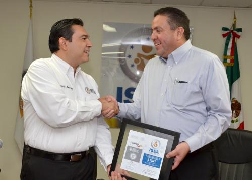 Eduardo Romero Campa, Director General del Instituto Sonorense de Educación para los Adultos (ISEA) y José Victorín Figueroa, Secretario General del Comité Ejecutivo del Sindicato de Trabajadores de la Industria de la Radio y la Televisión (STIRT) Sección Hermosillo suscribieron un convenio de colaboración y se hizo entrega de reconocimiento oficial ISEA- CONEVyT por ser una “Organización comprometida con la educación de sus agremiados.”