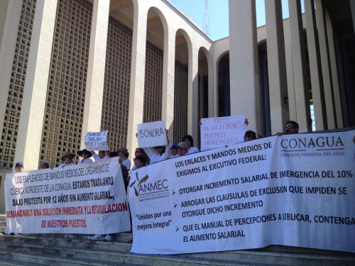 Empleados de la Comisión Nacional del Agua (Conagua) protestaron este sábado en Hermosillo porque no les han aumentado el salario desde hace trece años.