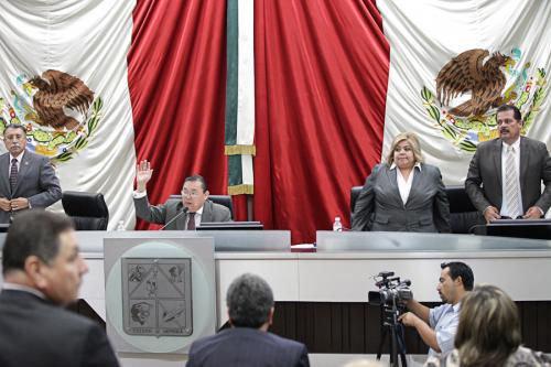 El diputado Ismael Valdez López presidente de la mesa directiva del Congreso del Estado cedió el uso de la voz al diputado Samuel Moreno Terán quien presentó la iniciativa de reforma que establece evitar la proliferación de los centros de apuestas en la entidad.