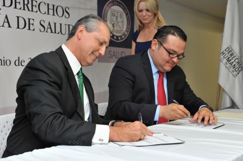 Un convenio único en su tipo fue el que se firmó este día por el Secretario de Salud, José Jesús Bernardo Campillo García y el Presidente de la Comisión Estatal de Derechos Humanos, Raúl Antonio Ramírez.