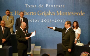 El doctor Heriberto Grijalva Monteverde rindió protesta hoy como rector de la Universidad de Sonora para el periodo 2013-2017.