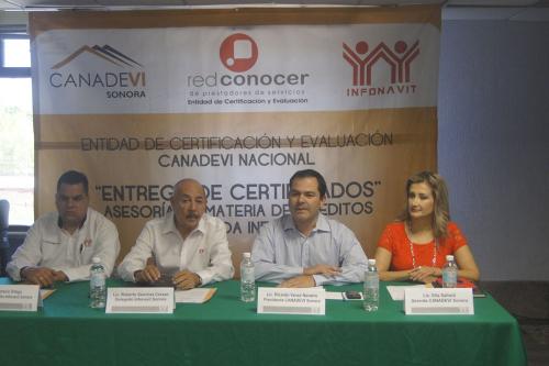 Por su parte el delegado federal del INFONAVIT en Sonora, Roberto Sánchez Cerezo, celebró que CANADEVI se ocupe en impulsar la capacitación y la certificación de los asesores de créditos del Infonavit, ya que los derechohabientes son los más beneficiados con una mejor orientación a la hora de resolver como aplicar su crédito.