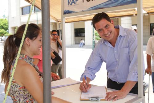 El diputado Nieves Robinson Bours acudió este mediodía a firmar el documento en el módulo ubicado en la Plaza Zaragoza, con el que se promoverá un amparo colectivo en defensa del agua para Hermosillo, lo que calificó como una vía jurídica, sin manifestaciones ni afectaciones a terceros.