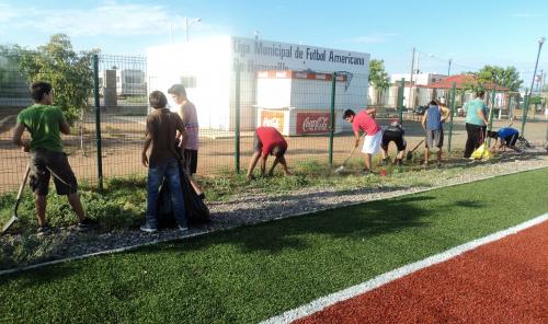 En esta ocasión, los jóvenes empezaron con una primera etapa de limpieza dentro del campo deportivo y las áreas aledañas de la unidad deportiva, donde se practica el futbol americano, zumba y caminata.
