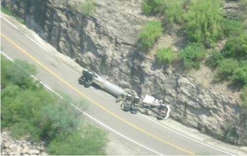 La pipa se volcó exactamente en el kilómetro 167 de esa carretera federal y provocó que se detuviera la operación de los pozos en las comunidades rurales del municipio de Ónavas y Rosario, ante el riesgo todavía no confirmado de contaminación.