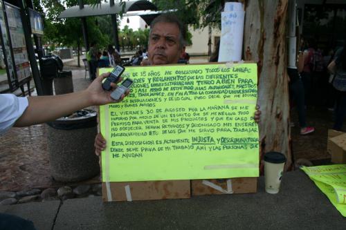 Manifestó que no sólo es él, sino una serie de personas que a esto se dedican al interior de la institución y que de aquí sacan para el sustento de sus familias, por lo que no se vale que por cumplir con un proyecto los quieren retirar de su labor.