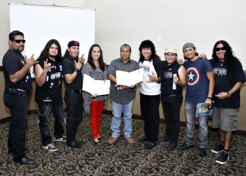 La directora del voluntariado, Diana Hernández de Cuen, y el padre Gilberto Lezama, recibieron la aportación por parte de integrantes del Grupo Retro, quienes obtuvieron los alimentos como parte de la admisión al concierto de celebración de su aniversario el pasado 31 de agosto.