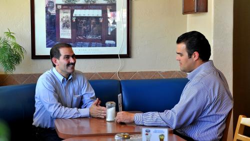 El gobernador Guillermo Padrés y el alcalde de Cajeme, Rogelio Díaz Brown, se encontraron en Navojoa y hablaron del Acueducto Independencia y otros temas para el bienestar de los cajemenses.