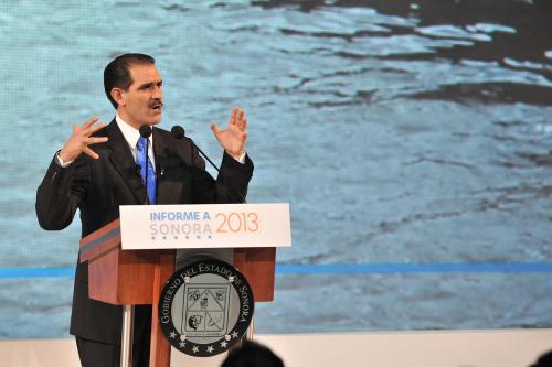 En su mensaje, el gobernador Guillermo Padrés Elías también destacó el inicio de construcción de la presa Bicentenario, en el municipio de Álamos, en una zona ocupada mayormente por indígenas guarijíos.