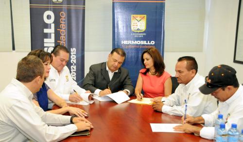 En un ambiente de cordialidad, el alcalde Alejandro López Caballero y el secretario general del Sindicato de Trabajadores al Servicio del Ayuntamiento de Hermosillo, Trinidad Leyva Miranda, firmaron el convenio sindical correspondiente al periodo 2014-2015.