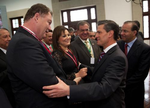 El presidente de la República, Enrique Peña Nieto, y el senador por Sonora, Ernesto Gándara Camou, intercambiaron saludos y expresiones en el marco del Foro Internacional "Políticas Públicas de Empleo y Protección Social".