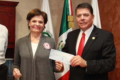 Entrega presidente del Congreso donativo a Cruz Roja