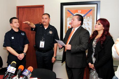 Acompañado por el comisario general de Seguridad Pública Municipal, Luis Felipe Chan Baltazar, y la regidora Zulma Galaz, Villalobos García explicó que tras la decisión de este nombramiento no prevaleció el criterio de la rapidez, sino el interés de seleccionar al mejor perfil en función del objetivo de poner en las mejores manos la seguridad de los hermosillenses.
