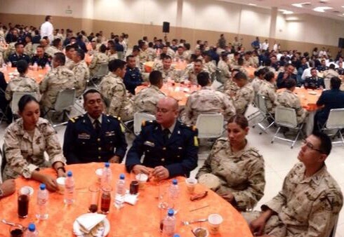Con la presencia del comandante de dicha zona militar, Cervando Centella Pérez, y de más de 350 militares, que van desde generales, jefes, oficiales y personal de tropa, los secretarios generales de las secciones 28 y 54 del Sindicato Nacional de Trabajadores de la Educación, los profesores Fermín Borbón Cota y Jaime Rochín Carrillo, hicieron entrega de un reconocimiento al representante de las fuerzas armadas por la labor que hacen en favor de los sonorenses.