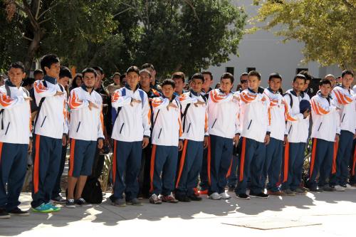 Los alumnos-deportistas que tomarán acción en la XXVIII edición de la Universiada Estatal participaron este día en la ceremonia de abanderamiento y entrega de uniformes que realizó la Universidad Estatal de Sonora (UES).