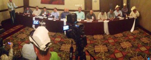 En conferencia de prensa conjunta, donde se revisaron los avances en el cumplimiento del convenio firmado con la tribu yaqui en Bucareli el pasado 21 de enero, los delegados federales Adolfo García Morales (Segob); Javier Hernández Armenta (SCT); César Lagarda Lagarda (Conagua); Rosario Rodríguez Quiñonez (Sedesol); José Luis Germán Espinoza (CDI); Víctor Guerrero González (SEP); Juan Ángel Castillo Tarazón (Sedatu); Ulises Cristopulos Ríos (Semarnat) y Rogelio Méndez Ibarra, subdelegado (Sagarpa), expusieron los avances en el ejercicio de programas y recursos federales en la nación yaqui, mismas que se aplican con pleno respeto a su identidad y visión de desarrollo.