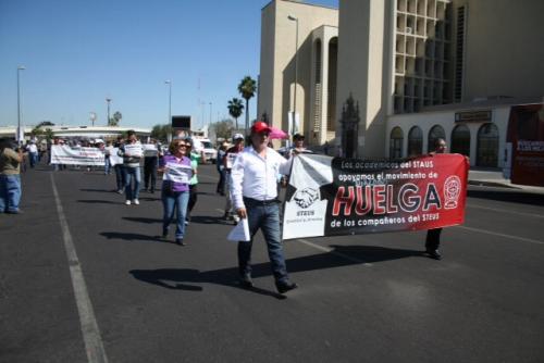 Maestros del Sindicato de Trabajadores Académicos de la Universidad de Sonora (Staus), se manifestaron por las calles de Hermosillo y solicitaron a las autoridades estatales su intervención para dar solución a los problemas que enfrenta la Máxima Casa de Estudios con sus agremiados.