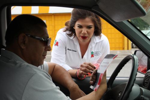 Moreno Terán y colaboradores suyos repartieron volantes en diferentes cruceros de la ciudad, con información de prevención de accidentes y sobre la póliza de seguro contra terceros que los sonorenses tienen sin costo en su licencia de conducir vigente.