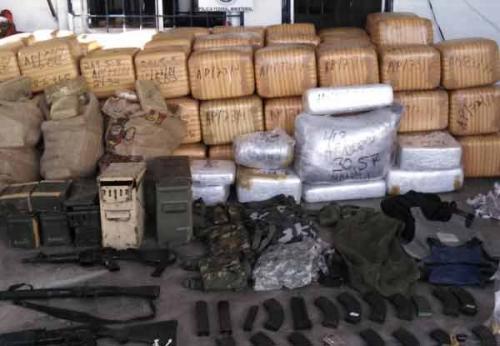 En un comunicado, la dependencia informó que "lo asegurado incluyó 170 paquetes de marihuana, que en conjunto pesaron mil 43 kilogramos, dos fusiles, uno calibre .223 (5.56mm) y otro calibre 7.62x39mm, dos pistolas calibre .9 mm, y una granada de práctica libre .40mm de baja velocidad modelo M212".