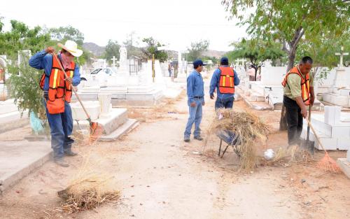 El mantenimiento que se realizó a los panteones El Sahuaro, La Manga, Palo Verde y Yáñez, donde se hizo retiro de maleza y basura, limpieza y abatización de piletas, barrido, pintura de algunas fachadas.