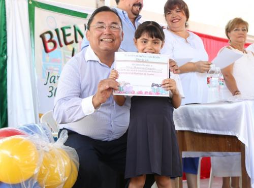 En la Escuela Primaria “Hermanos Flores Magón”, el Presidente del Congreso del Estado estuvo como invitado de honor en la ceremonia de Lunes Cívico, en la que además entregó un reconocimiento y una computadora con impresora a la niña Jazmín Alejandra Miranda Lazcano, diputada infantil que cursa el sexto grado en esa institución.