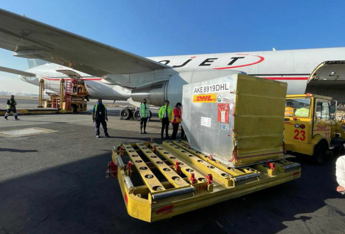 Un avión de la empresa DHL con 34 mil 125 dosis de la vacuna de Pfizer y BioNTech contra el covid-19 aterrizó la mañana de este sábado en el Aeropuerto Internacional de la Ciudad de México.