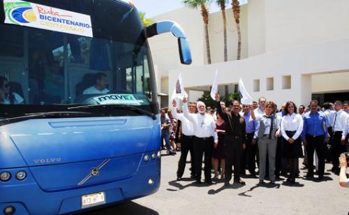 Para que todos los sonorenses tengan la oportunidad de conocer su Estado, a bajo costo y con una atención de calidad, el mandatario estatal cumplió una promesa más al presidir el inicio del programa con el banderazo de salida al convoy de camiones que llevan a los primeros tres mil viajeros de 21 municipios.