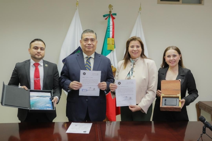 La diputada presidenta de la Mesa Directiva, María Eduwiges Espinoza Tapia (Morena), acompañada de la diputada María Karina Olivares Rábago, presidenta de la Comisión de Seguridad Ciudadana, así como del diputado René García Rojo, presidente de la Comisión de Justicia y Derechos Humanos, recibió el documento en representación de la 64 Legislatura.