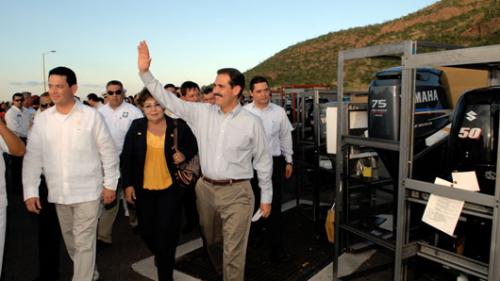 Cumpliendo un compromiso de campaña, el Gobernador Padrés entregó 650 motores fuera de borda, con inversión de 100 millones de pesos, e inauguró la terminal marítima pesquera “Las Playitas”, cuyo costo fue de 136 millones de pesos.