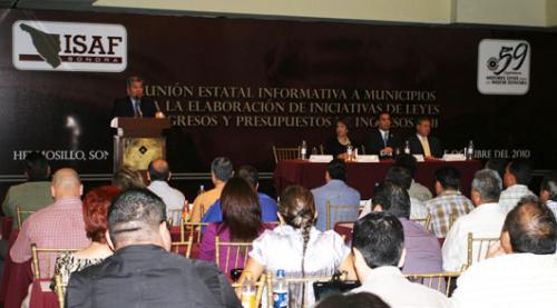 Hermosillo, Sonora, 15 de octubre de 2010.- En el marco del proceso de apoyo a los gobiernos municipales, este día se realizó la “Reunión Estatal Informativa a Municipios para la Elaboración Iniciativas de Leyes de Ingresos y Presupuestos de Ingresos 2011”, con la participación de funcionarios de los 72 ayuntamientos de Sonora.