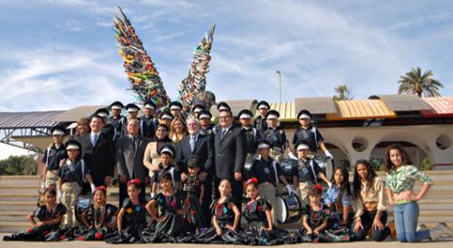 La Presidenta de DIF Sonora, acompañada también por Arturo Ramírez Ramírez, Presidente de la Comisión Estatal de los Derechos Humanos y el Diputado David Galván Cázares, Presidente de la Comisión de Seguridad Pública del Congreso del Estado, se tomó una fotografía en la escultura de “La Paloma de la Paz”, elaborada con juguetes bélicos entregados el año anterior.