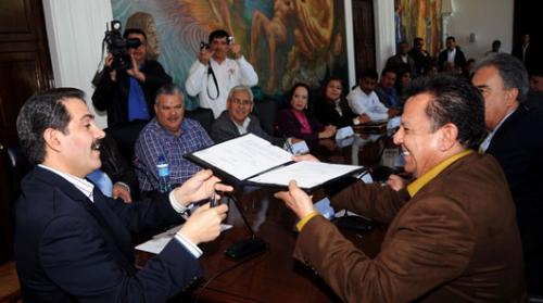 Hermosillo, Sonora Enero 07 de 2011.- El Gobernador Guillermo Padrés Elías oficializó un incremento del 7.7 % en sueldo y Prestaciones Económicas Sociales para los trabajadores del Estado con la firma de convenio 2011 entre Gobierno y Sutspes.