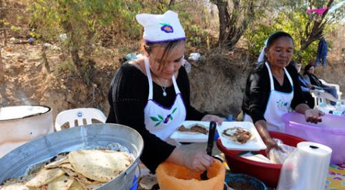 A las afueras del pueblo mágico, un amplio espacio en donde hay exposición de pintura mayo, venta de artesanía, medicina tradicional y degustación de olorosos caldos y guisados con recetas originales del grupo mayo, y, entre lo más atractivo -sin duda- se encuentran las originales tortillas de garbanzo servidas directamente del comal al plato. Todo ello amenizado con música grabada de diferentes grupos indígenas.