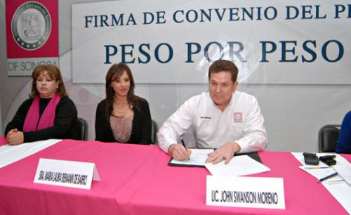 Hermosillo, Sonora Febrero 01 de 2011.- Con el objetivo de invertir de mejor manera los recursos del programa Peso por Peso el Director de DIF Sonora, John Swanson Moreno y más de 60 instituciones del sur de Sonora firmaron un convenio de colaboración para beneficio de personas en situación vulnerable.