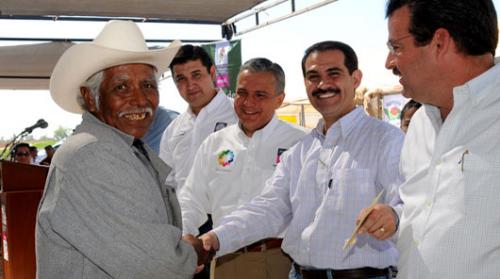 En el evento realizado en el campo agrícola Gutiérrez, al nororiente de Ciudad Obregón, alrededor de mil trabajadores del campo recibieron 560 pesos en efectivo en esta primera semana y posterior a la inspección del proceso de pago, el Gobernador Padrés y el Secretario de Sedesol realizaron un recorrido por los campos de tomatillo para revisar la recuperación que muestran las plantas.