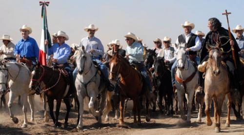 A trote de caballo cabalgaron con el Gobernador Padrés el presidente del PAN en Sonora, Juan Bautista Valencia Durazo; y los alcaldes de Hermosillo, Javier Gándara Magaña; de Cajeme, Manuel Barro Borgaro; de Guaymas, César Lizárraga Hernández; Alejandro Zepeda Munro, de Puerto Peñasco; de Magdalena Kino, Melesio Chavarín Gaxiola y Juan Gómez López de Ímuris.