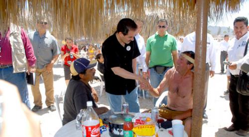 Ante el clima cálido de la playa, mientras algunos disfrutaban bajo las palapas y otros se refrescaban en el mar, Guillermo Padrés dijo a los turistas de Ciudad Juárez, Guanajuato, Guadalajara, Obregón, Hermosillo, Tijuana, San Diego y Washington, que el lugar sería completamente transformado para atraer a más turistas en los próximos años.