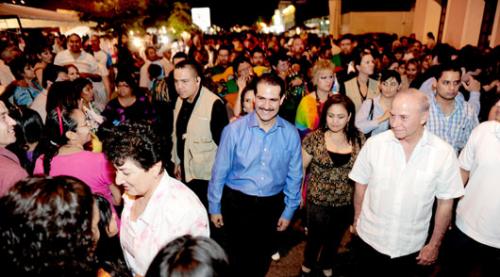 El jefe del Ejecutivo además de recorrer los stands, estrechar manos, tomarse la fotografía con jóvenes, con niños, con mujeres disfrutó de la noche de gala con los reyes del mambo, el éxito grupo mexicano Sonora Santanera que congregaron a más de 10 mil personas en la plaza Alonso Vidal.