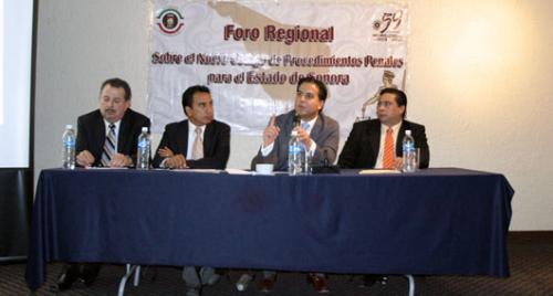 Navojoa, Sonora a 30 de mayo de 2011.- La presencia de los jueces en las audiencias, mejorar las cadenas de custodia, capacitación al recurso humano tanto en juzgados como a los abogados litigantes y nuevos planes de estudios en instituciones de educación superior, fueron las propuestas recibidas en el tercer “Foro Regional sobre reformas al Nuevo Código de Procedimientos Penales para Sonora”, organizado por el Poder Legislativo la tarde noche de este lunes en esta ciudad.