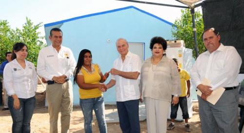 El Alcalde Javier Gándara Magaña acompañado de la Presidenta del sistema DIF Hermosillo, Marcela Fernández y el director de Desarrollo Social, Luis Jaime Martínez, realizó la entrega simbólica de las llaves de la vivienda, al igual que un refrigerador, una parrilla y una cocineta.