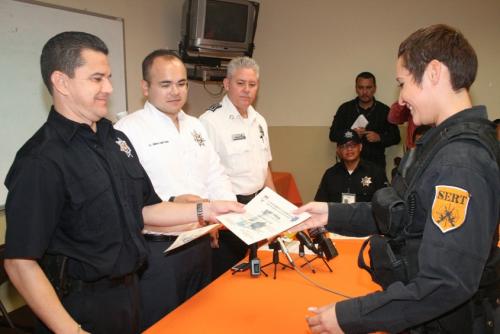 Hermosillo, Sonora, a 17 de octubre de 2012.- El comisario general de Seguridad Pública Municipal, Luis Felipe Chan Baltazar, entregó reconocimientos a 18 policías que participaron en acciones que salvaron la vida a diferentes personas durante los últimos meses.