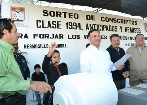 Hermosillo, Sonora; 11 de noviembre de 2012.- El alcalde Alejandro López Caballero junto con autoridades militares, encabezaron el sorteo de conscriptos, en donde miles de jóvenes clase 1994, anticipados y remisos definieron si realizarán el Servicio Militar.