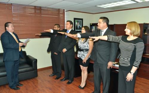 Hermosillo, Sonora, 27 de noviembre de 2012.- Ante el secretario del Ayuntamiento, Jesús Villalobos García, rindieron protesta hoy los comisarios de Bahía de Kino y Miguel Alemán, además de los directores de Desarrollo Rural, Coordinación de Jueces Calificadores y de la Dirección Administrativa de la Secretaría del Ayuntamiento.
