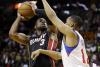 Guiados por otra gran actuación de LeBron James, el Heat de Miami empató el récord del equipo con su 14a victoria en fila con una remontada para vencer 99-93 a los New York Knicks.