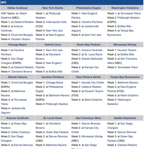 NFL da a conocer el calendario de pretemporada