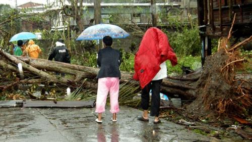 Los mercados financieros tuvieron que suspender sus actividades matinales y por la tarde retomaron sus operaciones. El observatorio climático dijo que la tormenta se había debilitado desde el estatus de "super" tifón.