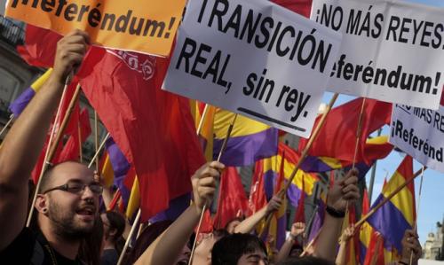 La abdicación del rey Juan Carlos en su hijo, el príncipe Felipe, desató en España la exigencia de un referéndum sobre el modelo del Estado por parte de algunos sectores de la izquierda y movimientos republicanos.